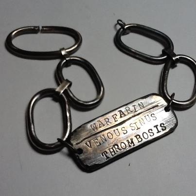 .925 silver, stamped and engraved. post-apocalyptic medical id bracelet, made to order. if you have to wear a bracelet for the rest of your life, why not make it you?