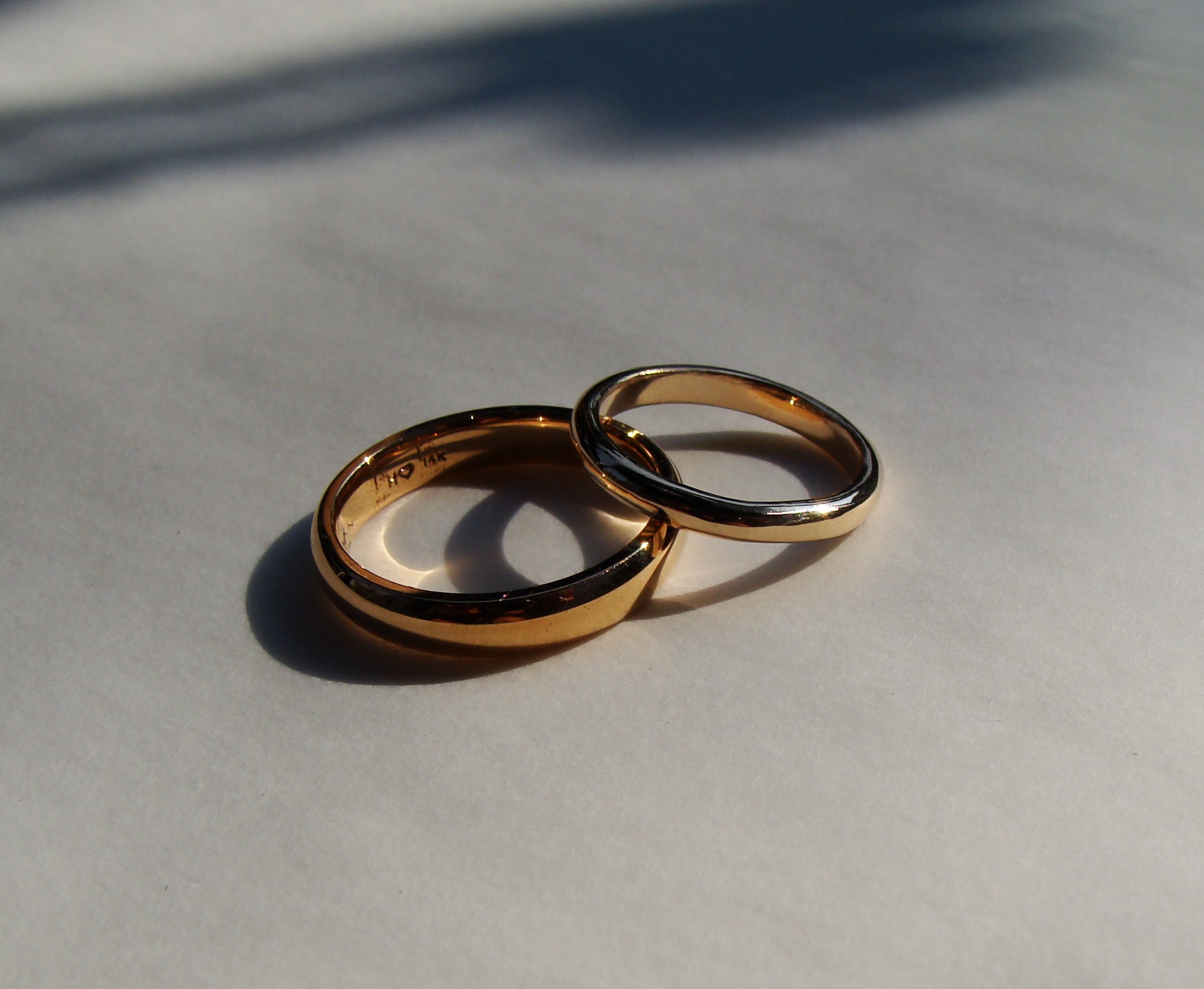 14k yellow gold wedding bands: hand carved into half round comfort fit styles and as always 100% recycled gold.