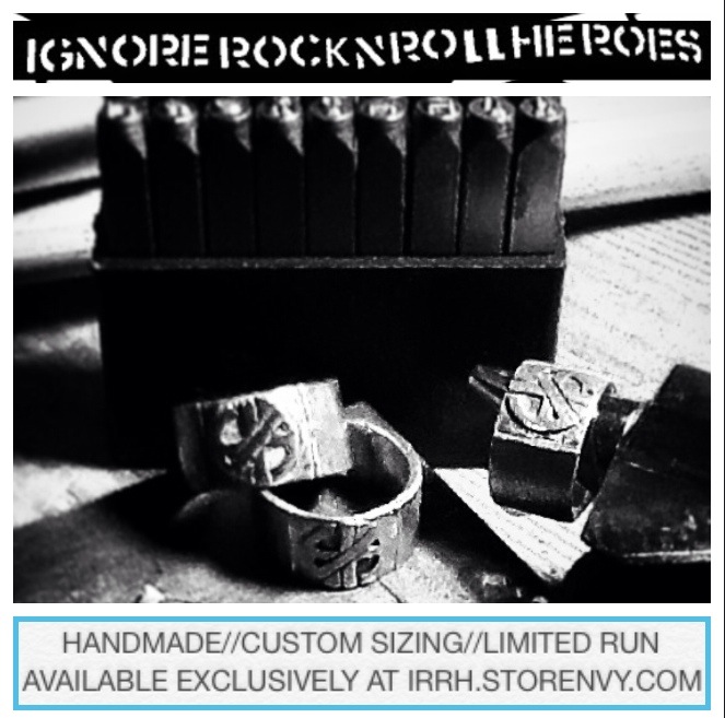 .925 silver each ring is still coming off my workbench and straight to you!!! for ordering/more information please visit ignorerocknrollheroes THANK YOU for supporting handmade jewelry and supporting punk networks!