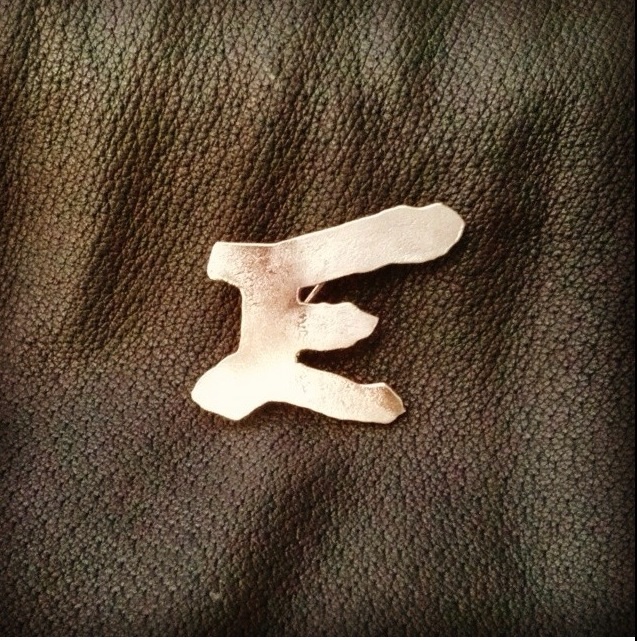 monogram nickel silver lapel pin inspired by the influential punk band DisCharge.
